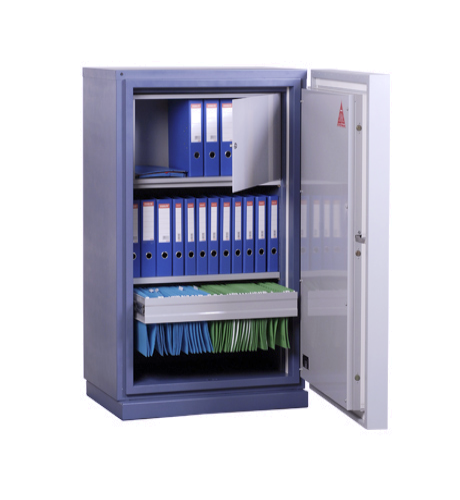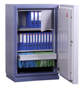 EN 1047-1, S 60 P and S 120 P. Una hora o dos horas de protección de documentos contra el fuego. Certificado por ECB•S.